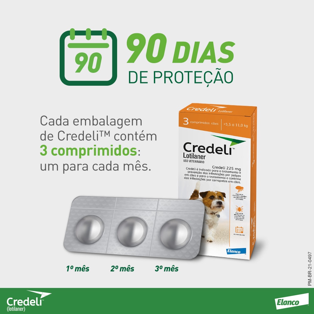 Credeli™ pode ser administrado em filhotes a partir de 1,3kg e 8 semanas de idade. Cada embalagem de Credeli™ contém 3 comprimidos, garantindo 90 dias de proteção para o seu pet!