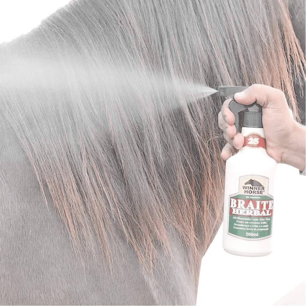 Recomendações: Lave e enxáguë bem o animal. Remova o excesso de água e em seguida pulverize pequena quantidade de Braite Abrilhantador, espalhe e escove. Deixe secar completamente antes de encilhar o animal. Uma aplicação semanal é o suficiente.