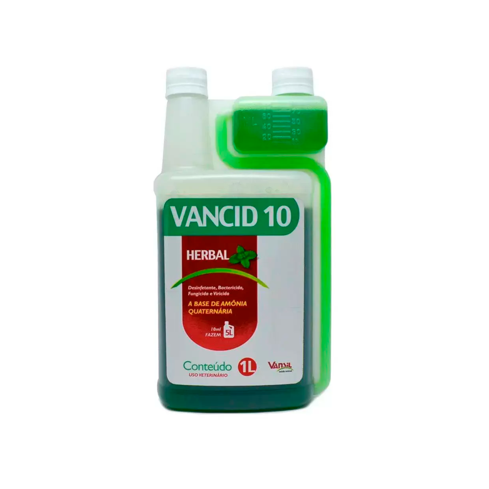 Desinfetante ideal para quem tem animais de estimação. A correta desinfecção dos ambientes é fundamental para a saúde dos cães e gatos, e para todos que convivem com eles. Vancid 10 é um desinfetante a base de Amônia Quaternária exclusivamente para uso em ambientes frequentados por animais domésticos como cães e gatos Combate bactérias, fungos e vírus Elimina odores Alta segurança