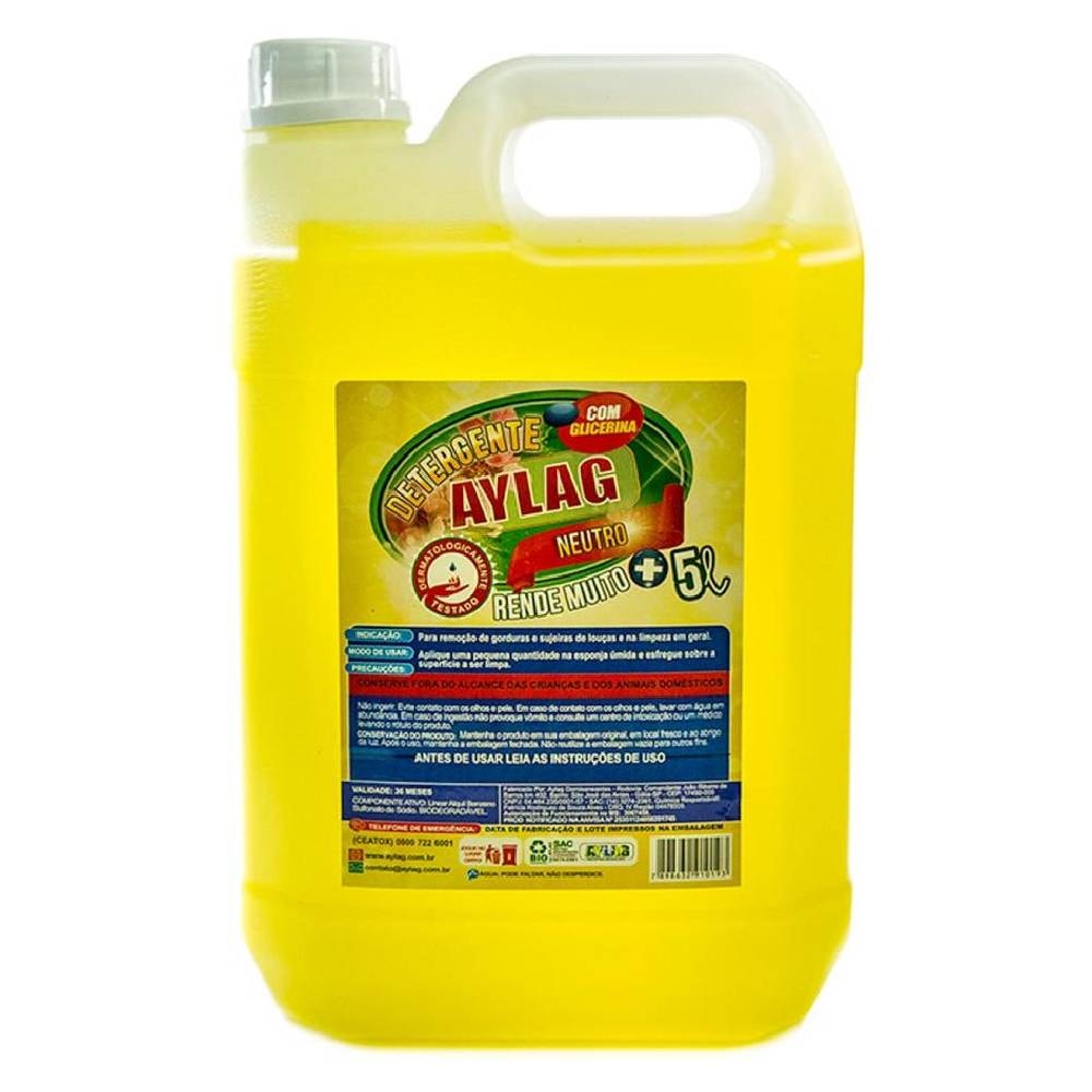 O Detergente Líquido Neutro Aylag 5L é um produto indispensável para uma limpeza eficiente e segura em diversos ambientes. Sua fórmula versátil e econômica o torna a escolha ideal para quem busca praticidade e qualidade na limpeza do dia a dia.