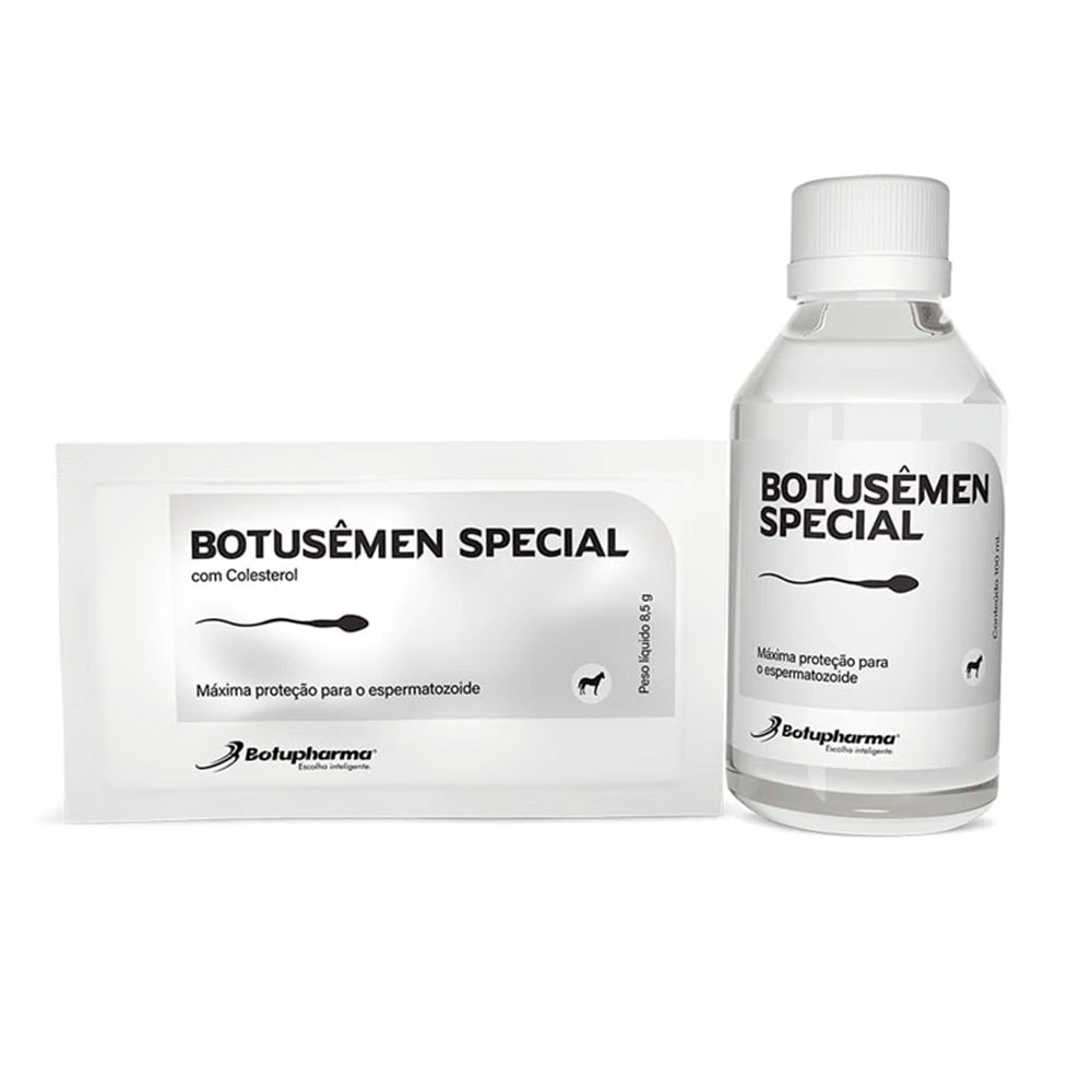 Detalhes do Produto O Diluente Botu Semen Special foi desenvolvido especificamente para atender às necessidades dos garanhões sensíveis ao processo de refrigeração do sêmen. Sua formulação inclui colesterol, essencial para manter a estabilidade da membrana plasmática dos espermatozoides durante o processo de arrefecimento.