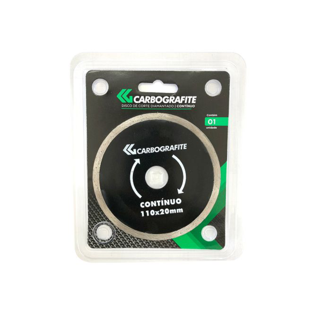 O Disco de Corte Diamantado Contínuo 110x20mm da Carbografite de corte a água liso, é indicado para o uso em pisos cerâmicos, ardósia, azulejos e porcelanatos.
