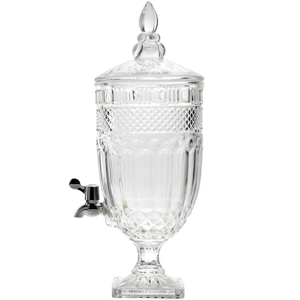 O Dispensador de Bebidas Cristal 4,5 litros da Class Home, também conhecido como Suqueira de Vidro, tem o corpo marcado por relevos que garantem charme e estilo.