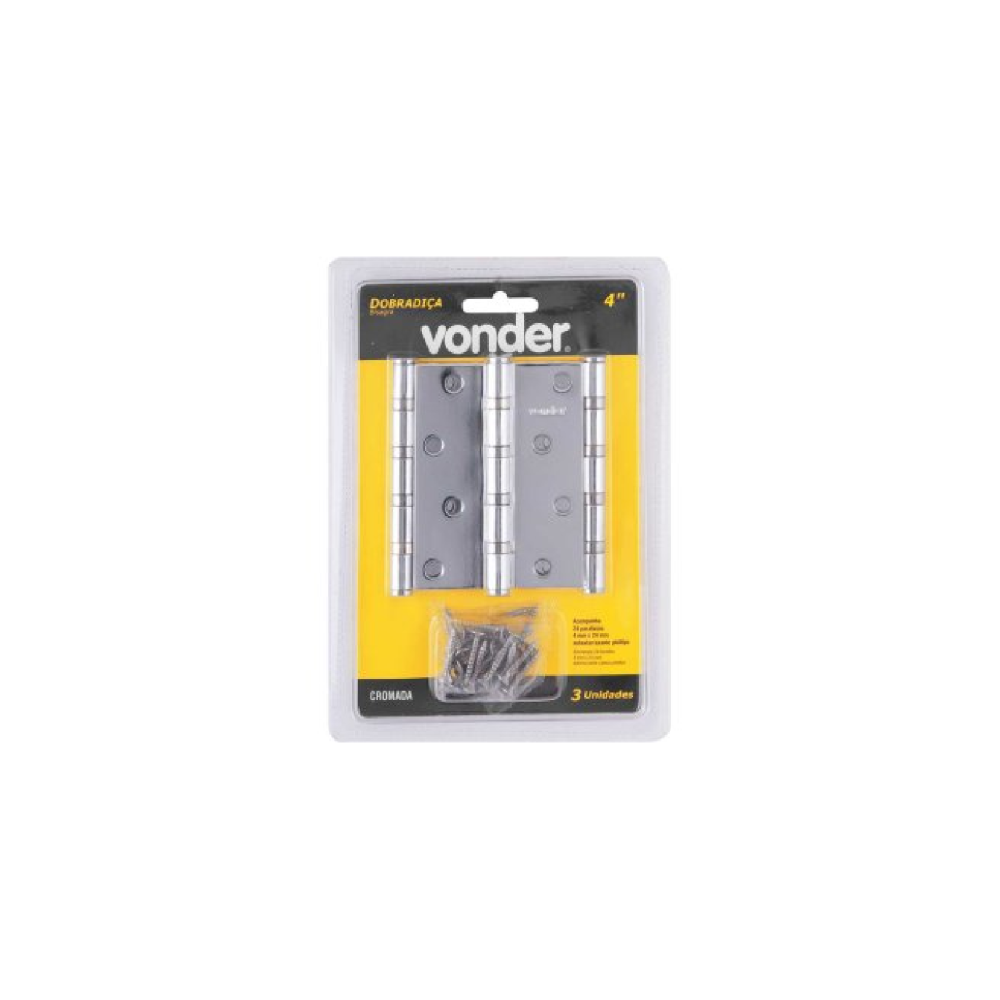 A Dobradiça 4" Cromada com 3 Peças da Vonder é a escolha perfeita para quem busca um produto de alta qualidade, durabilidade e um design moderno para suas portas. Seja para uma reforma, construção ou simplesmente para renovar suas portas, a Dobradiça Cromada Vonder é a solução ideal.