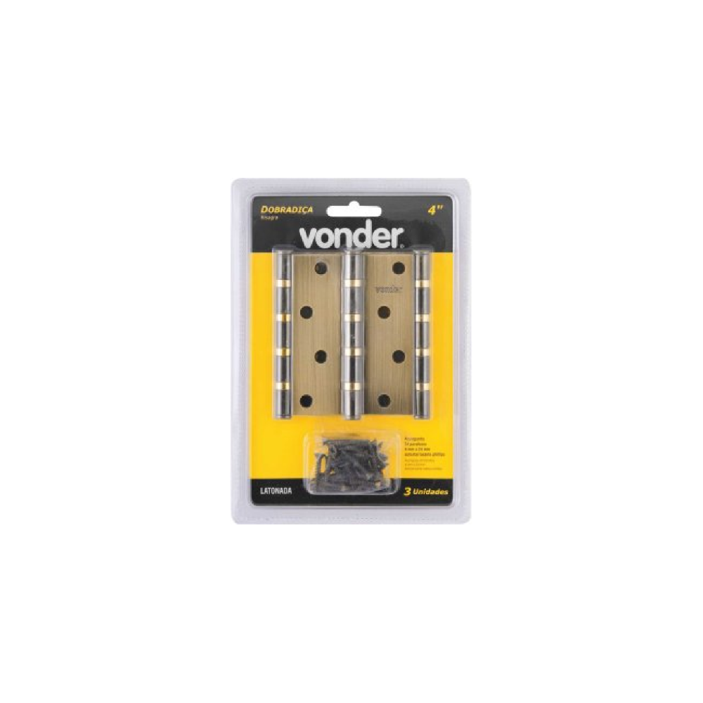 A Dobradiça 4" Latonada com 3 Peças da Vonder é a escolha perfeita para quem busca qualidade, durabilidade e um acabamento elegante para suas portas. Seja para uma reforma, construção ou simplesmente para renovar suas portas, a Dobradiça Vonder é a solução ideal.