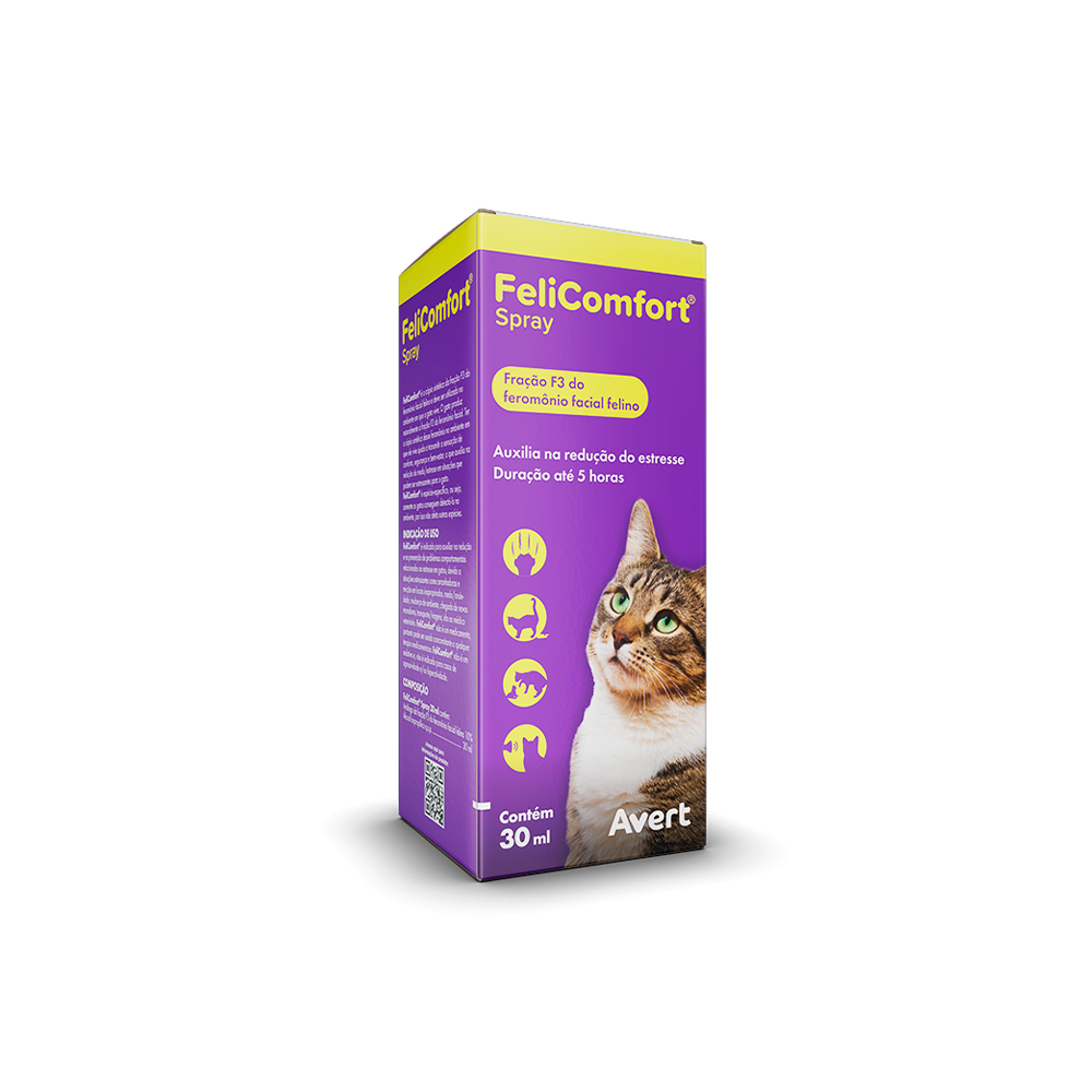 O FeliComfort Spray é um produto complementar e deve ser utilizado em conjunto com outras medidas de enriquecimento ambiental e treinamento positivo.