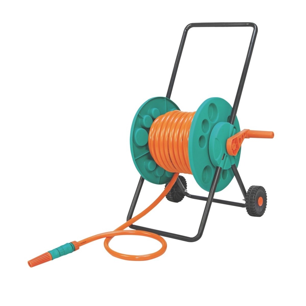 Enrolador de mangueira 1/2" até 60 m, com rodinhas, 2 engates rápidos, carretel em polipropileno