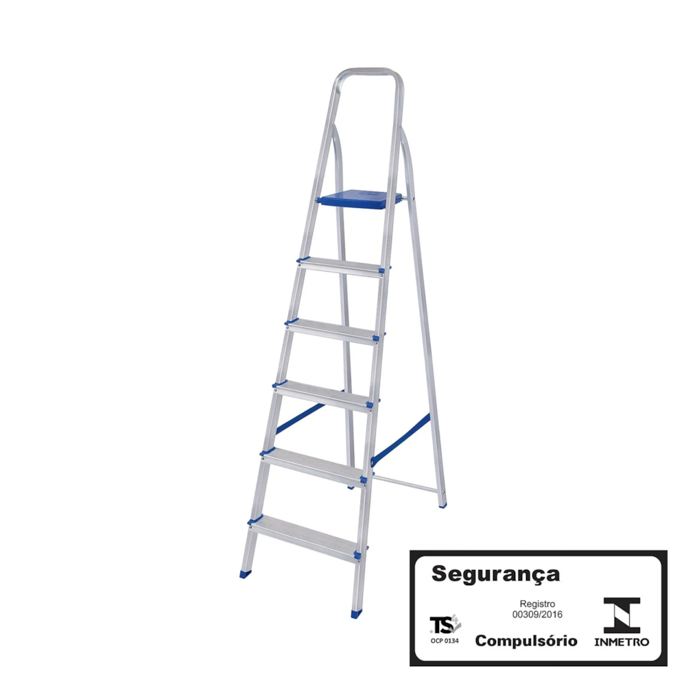 Escada de Aluminio Residencial Mor 6 Degraus 1,86 m Altura