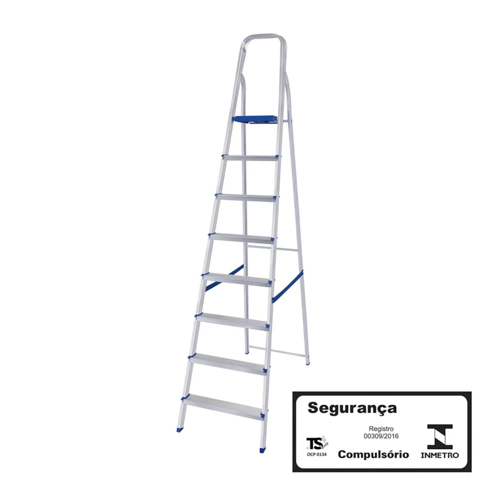 Além disso, todas as escadas seguem a Portaria INMETRO nº 219/2021, oferecendo segurança certificada e 3 anos de garantia. Um produto confiável, robusto e feito pra durar.