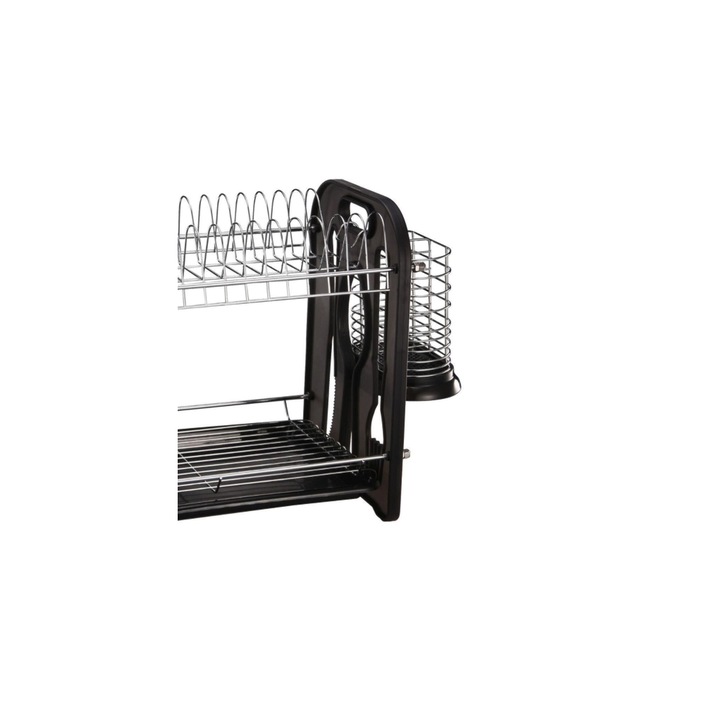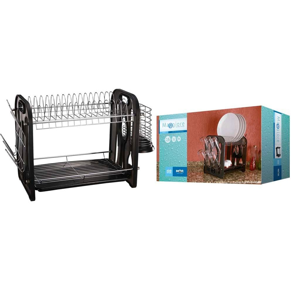 O Escorredor de Louças 2 Andares 16 Pratos Maggiore da Mor é completo e bem equipado, sinônimo de organização em sua cozinha. Com dois andares muito bem distribuídos, possui divisória para os copos, talheres e pratos, além de outros utensílios domésticos que podem ser acomodados no primeiro andar. Possui bandeja removível para garantir que a água se concentre apenas neste recipiente, mantendo sua pia sempre seca. Desenvolvido em aço e polipropileno na cor preta, é leve e muito resistente. Seu escorredor de talheres pode ser utilizado separadamente, além do escorredor de copos que também pode ser acoplado a outra superfície, caso necessário. Tem capacidade para até dezesseis pratos, trinta e dois talheres e seis copos.