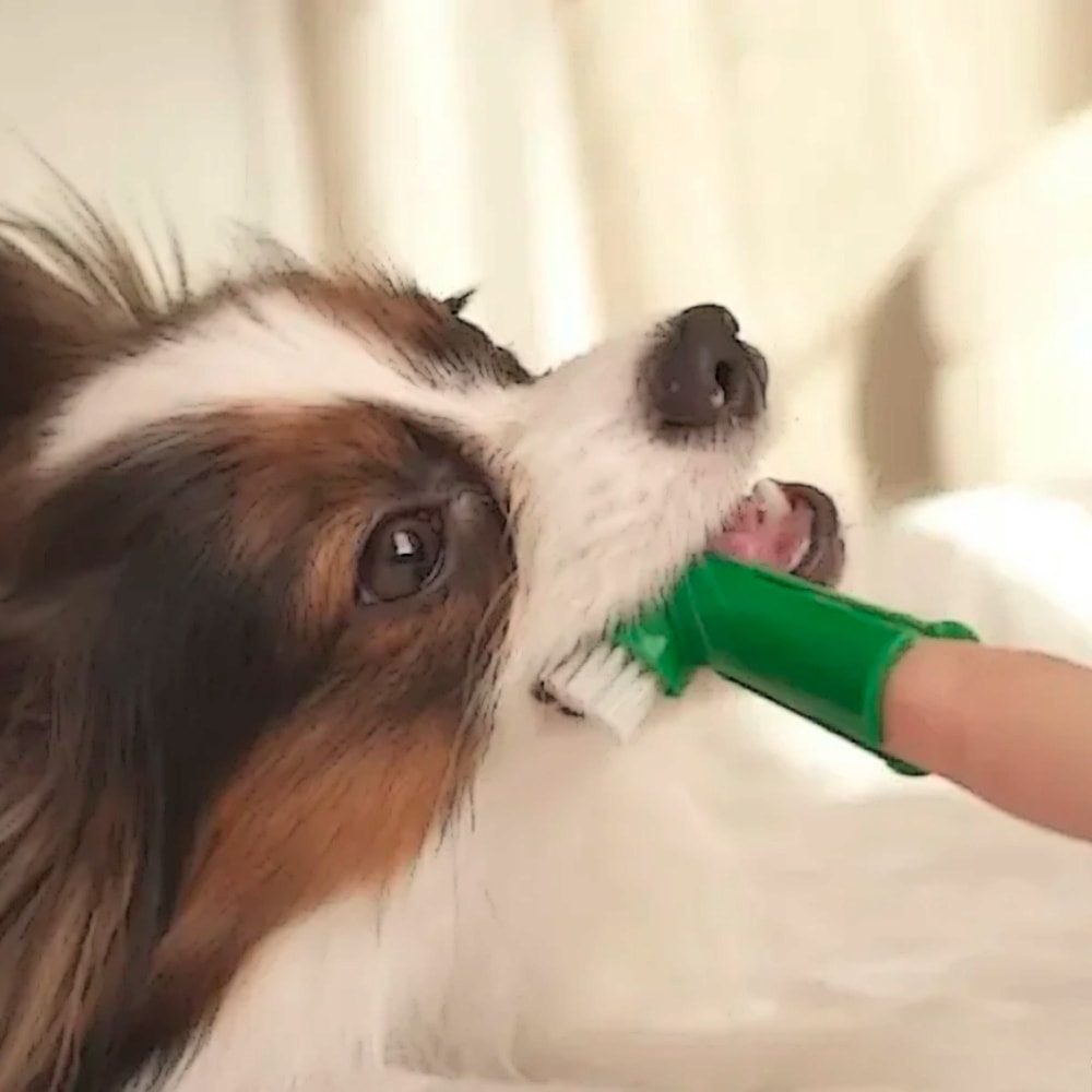 Útil para acostumar filhotes (e pets sensíveis) à rotina de higiene bucal
