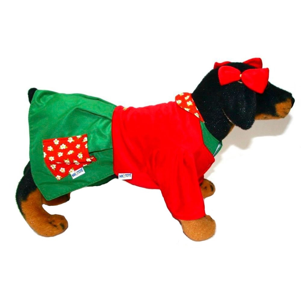 Vestido confeccionado em microfibra com fechamento em Velcro, casaco confeccionado em soft e fechamento com botão.