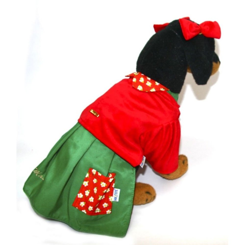 Vestido confeccionado em microfibra com fechamento em Velcro, casaco confeccionado em soft e fechamento com botão.