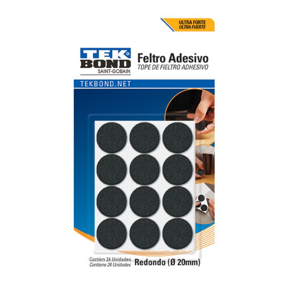 Detalhes do Produto O Feltro Protetor Adesivo Super Cola Tekbond absorve o impacto de batidas ou quedas e previne problemas com riscos, protegendo objetos, pisos e diferentes superfícies com eficiência, de forma prática e rápida.