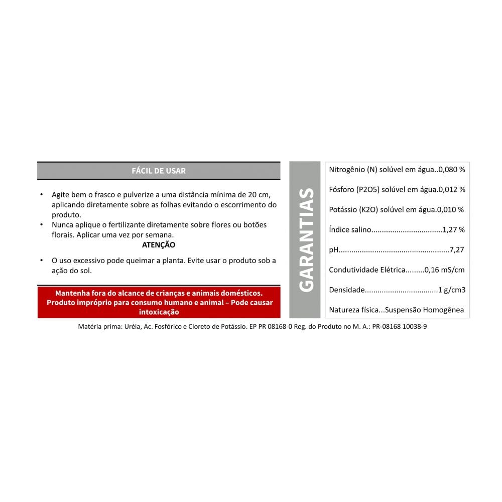 É importante agitar o frasco antes de utilizar e ao pulverizar o produto nas plantas, deve-se respeitar uma distância mínima de 20cm.