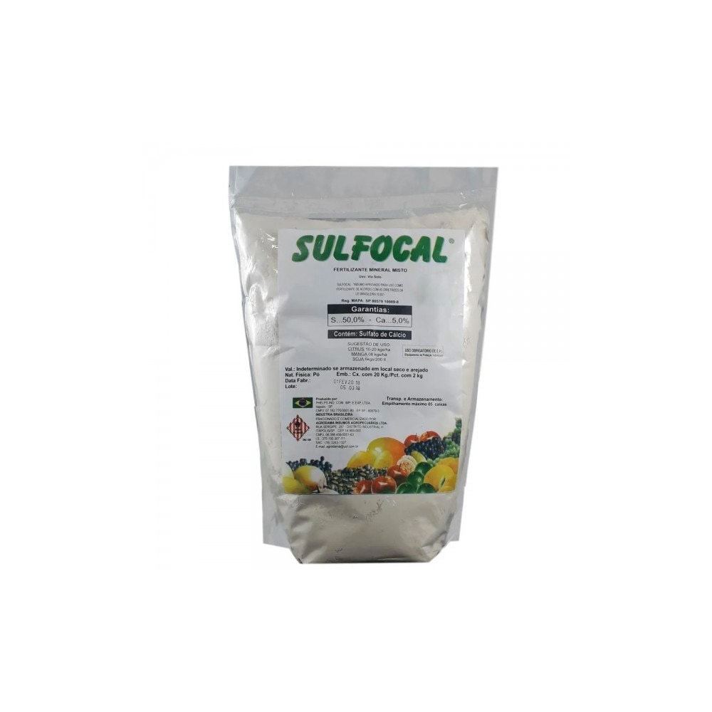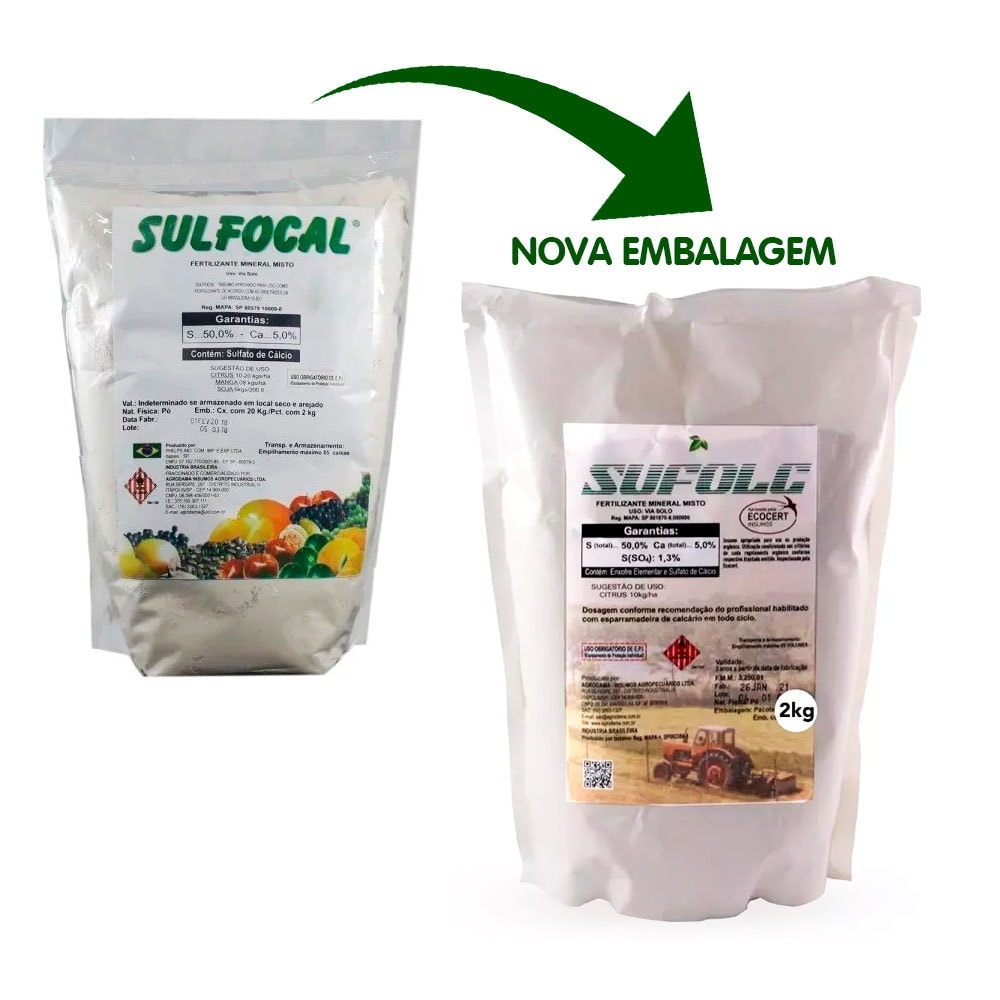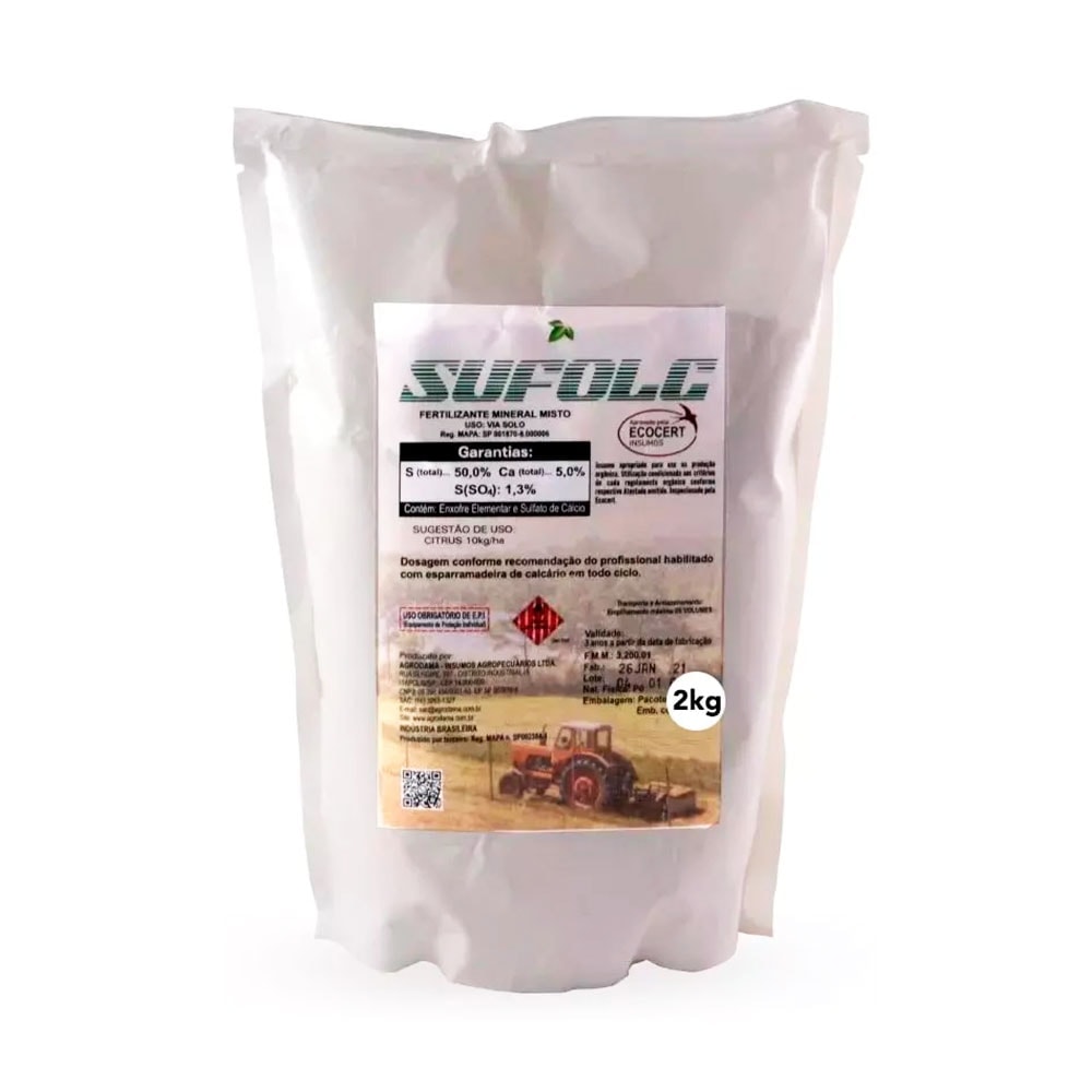 É um Fertilizante Foliar composto de ( 50% de Enxofre e 5% de Cálcio + SULFETOS ) muito eficaz no tratamento de pragas e doenças combatidas pelo Enxofre. Produto autorizado para uso na agricultura orgânica, com selo IBD.