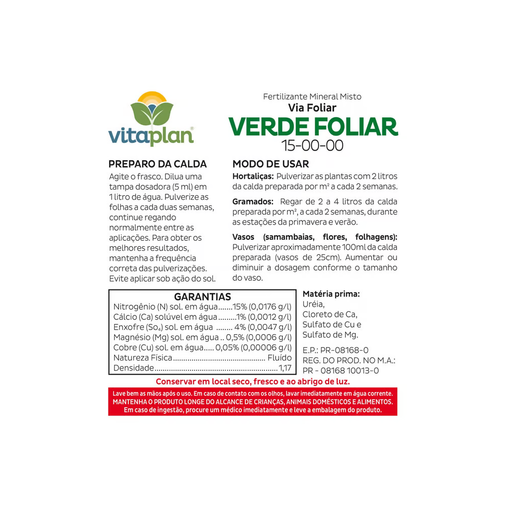 A principal componente do fertilizante verde foliar é a uréia, que fornece o nitrogênio necessário para o crescimento das plantas. A fórmula também pode conter outros nutrientes como cálcio, magnésio e cobre, que contribuem para a saúde geral das plantas.