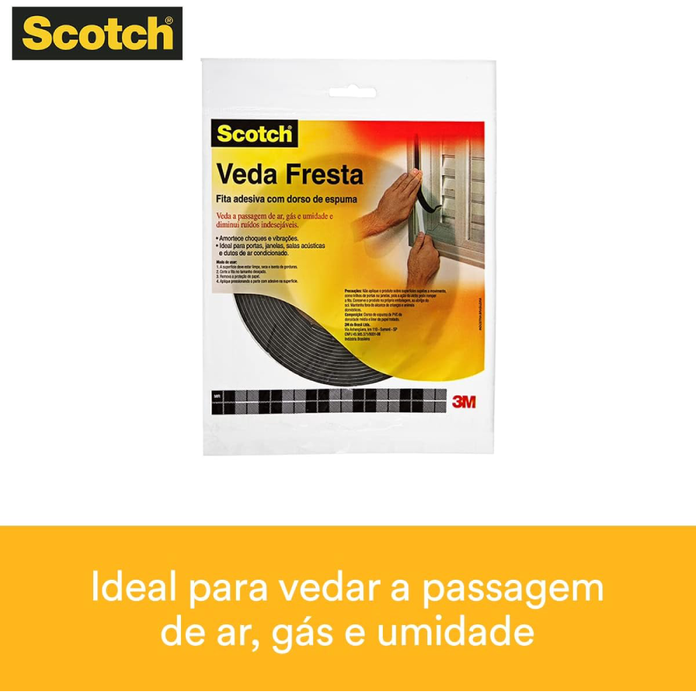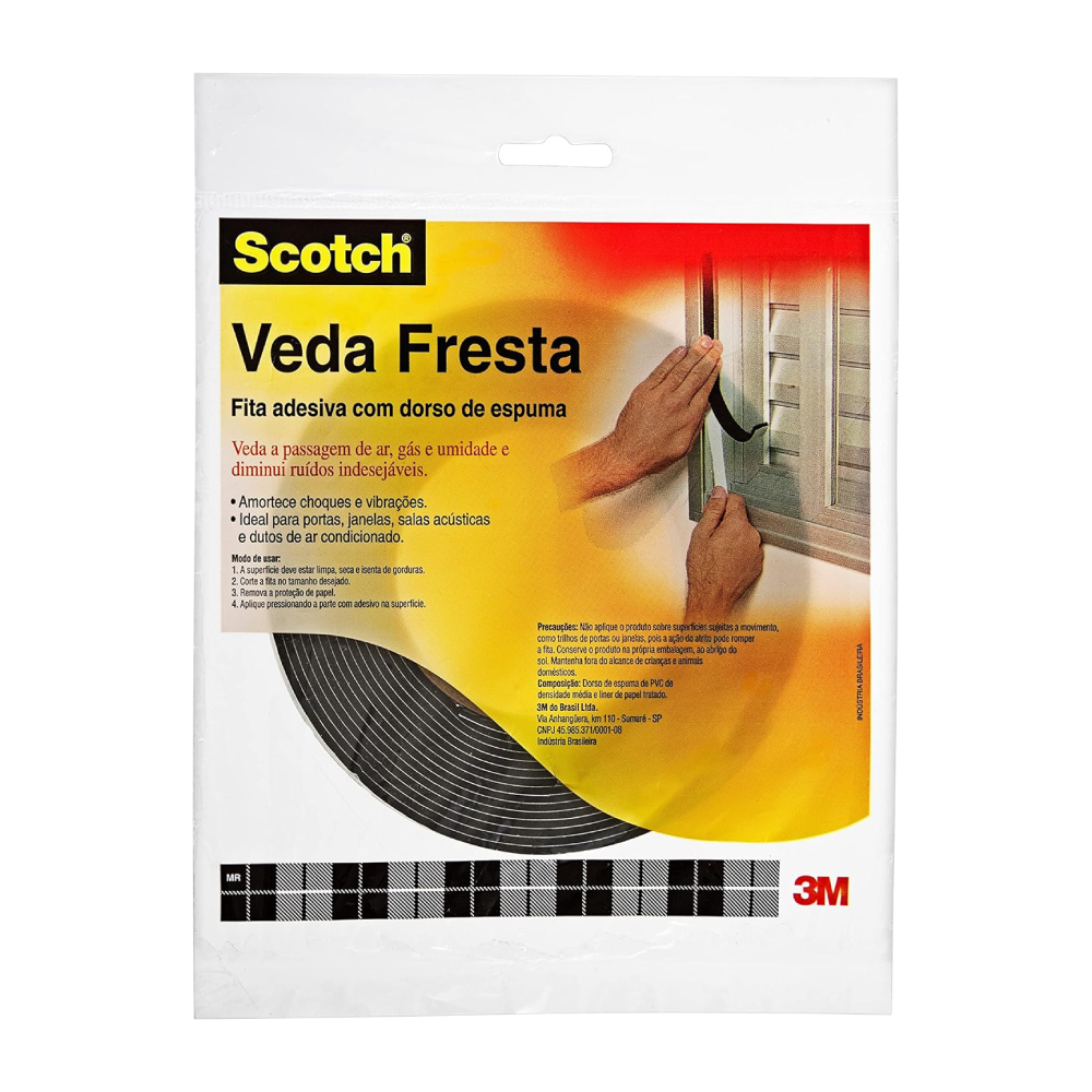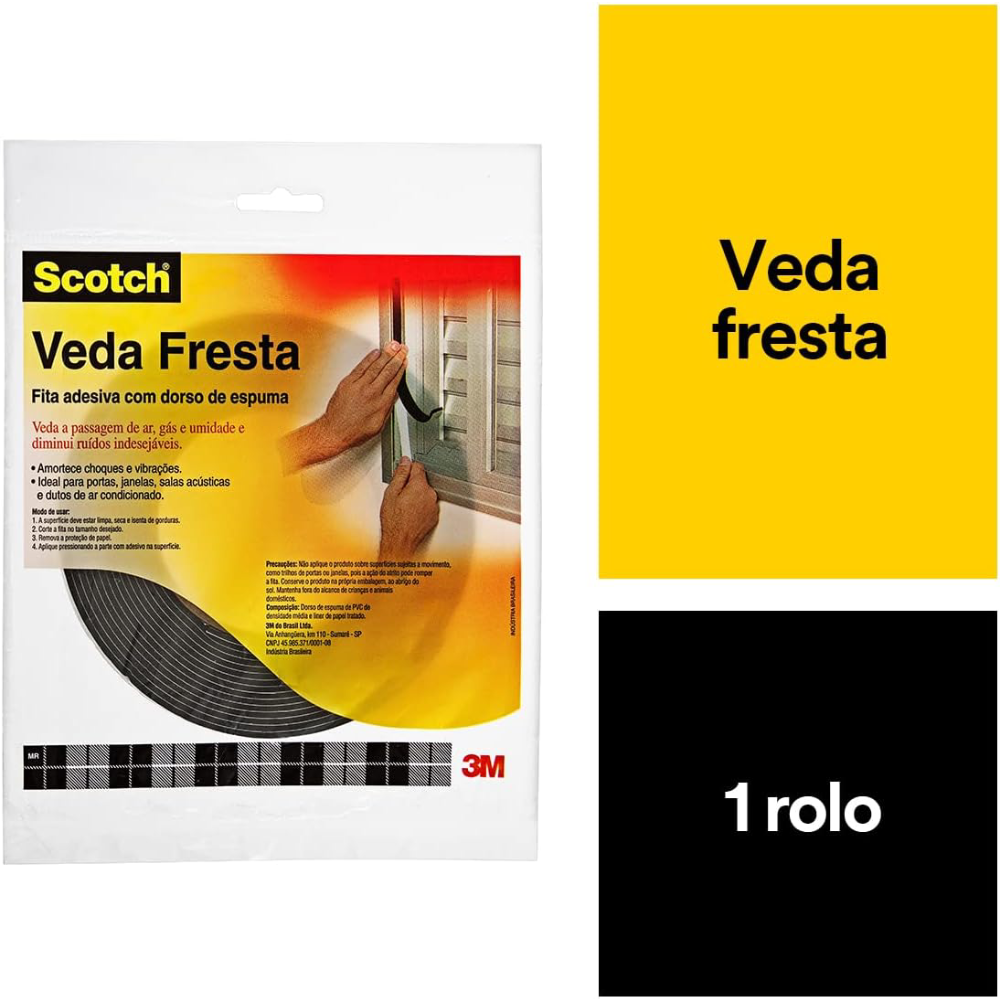 A Fita Veda Fresta é o produto ideal para vedação de ar, gás e umidade, diminuindo ruídos indesejáveis e amortecendo choques e vibrações. Fácil de aplicar, ela é especialmente indicada para janelas, portas, salas acústicas e dutos de ar-condicionado. Fabricada com espuma flexível de PVC de densidade média e adesivo com alto poder de adesão, a Fita Veda Fresta possui 19 mm de largura e 2 mm de espessura. Para utilizar o produto, a superfície deve estar limpa, seca e isenta de gorduras. Corte a fita no tamanho desejado e remova a proteção de papel. Depois, aplique, pressionando a parte com adesivo na superfície.