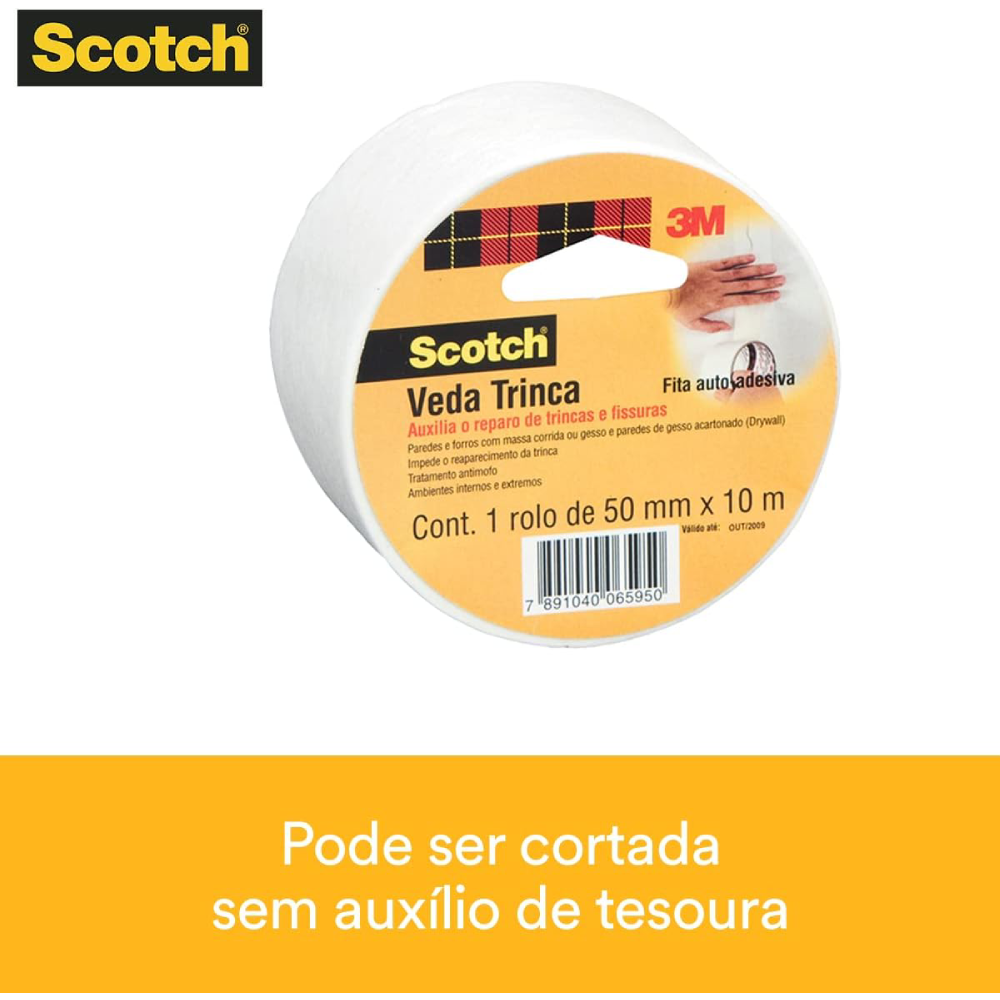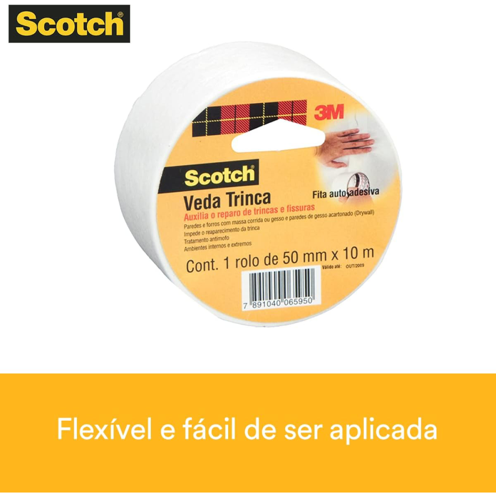 A Fita Veda Trinca 3M Scotch® auxilia no reparo de trincas e fissuras com menos de dois milímetros de profundidade, impedindo o reaparecimento da trinca. Flexível e fácil de ser aplicada, ela pode ser utilizada em paredes, forros com massa corrida ou gesso e paredes de gesso acartonado (drywall).
