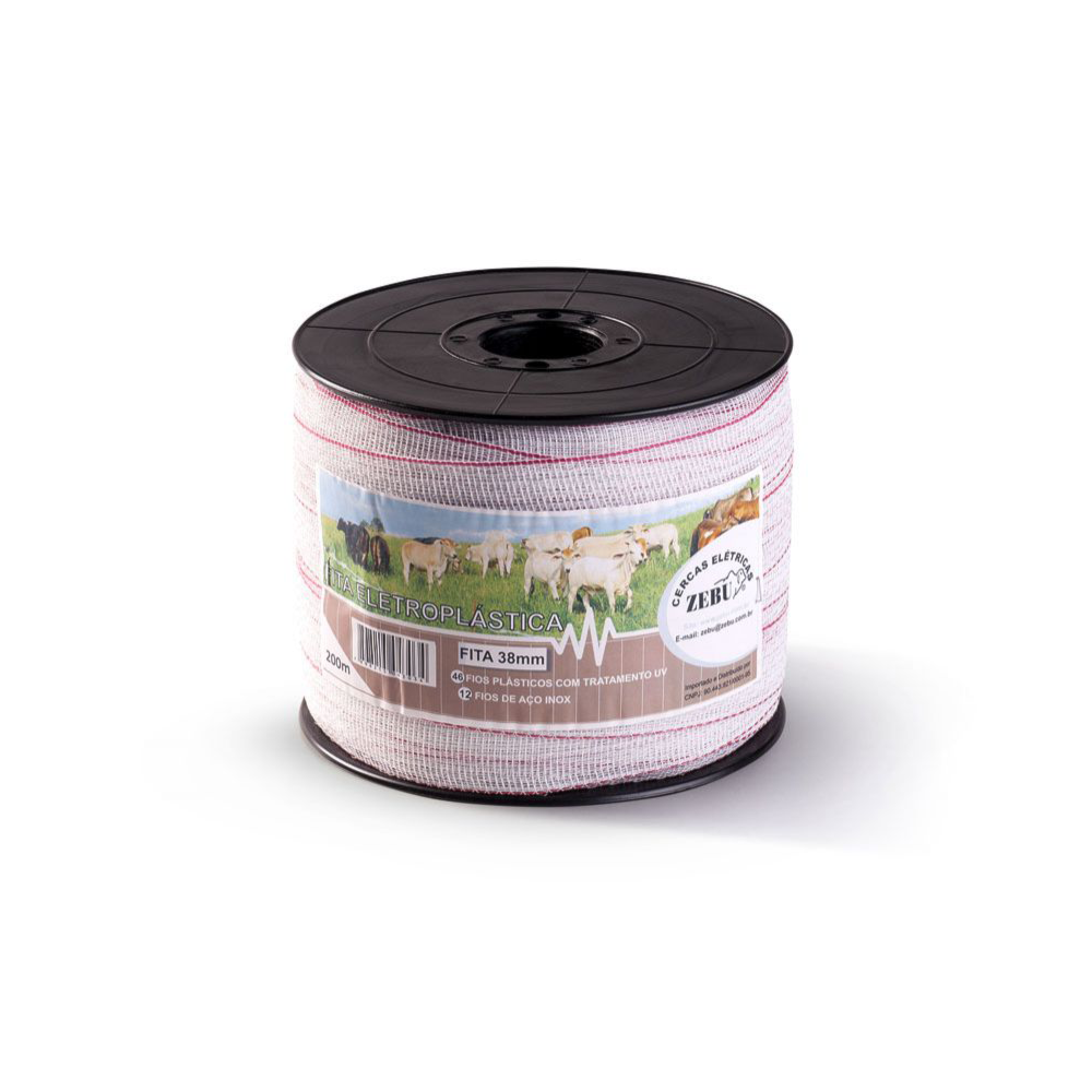 A Fita Eletroplástica é uma Cerca Elétrica Rural de 38mm X 200m da marca Zebu, carregada de resistência e durabilidade. Este produto é composto de fios de alta qualidade que oferecem excelente condutividade elétrica através de cordas trançadas de plástico e aço inox, adequado para criação de: Vacas, Cavalos, Cabras e Ovelhas.