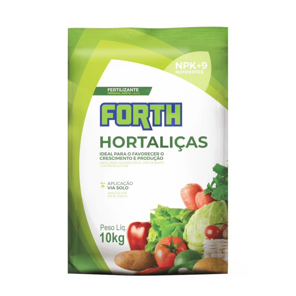 FORTH Hortaliças é um fertilizante completo, com todos os macronutrientes e micronutrientes essenciais para suprir as necessidades da sua horta. Possui formulação balanceada, com elementos solúveis e de alta qualidade, que chegam rapidamente às raízes da planta, proporcionando verduras e legumes saudáveis, e de alta qualidade.