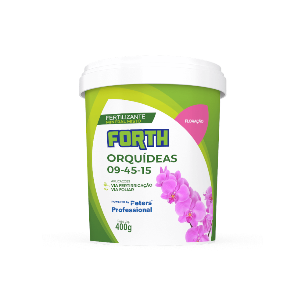 Conhecido pelos orquidófilos e amantes de orquídeas pela sua coloração azul, o Fertilizante Peters agora é distribuído no Brasil com a marca FORTH Orquídeas. Sua fórmula 09-45-15 é ideal para o crescimento, manutenção e floração da sua orquídea.