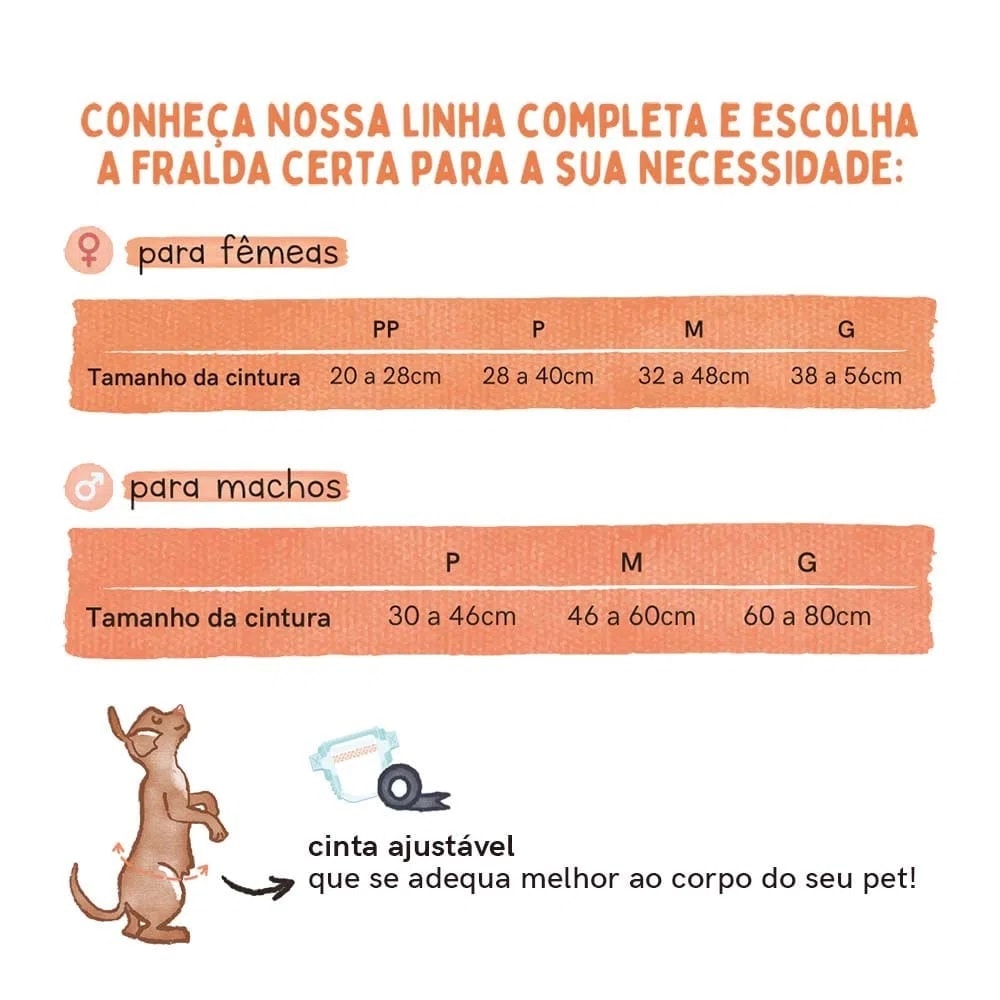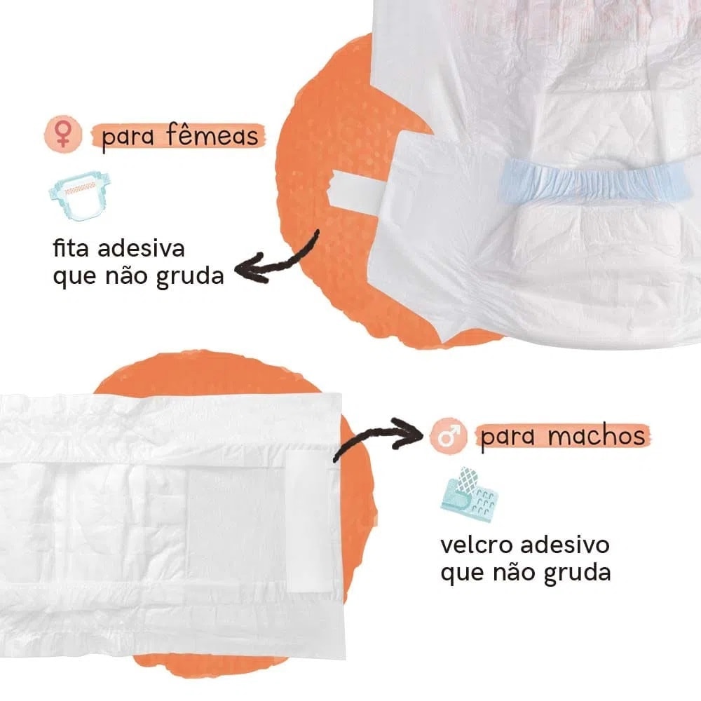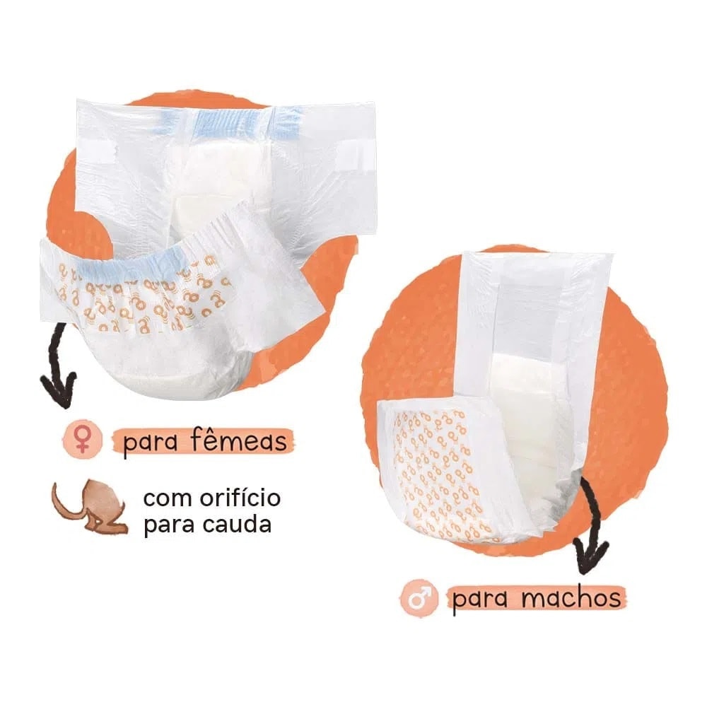 O núcleo superabsorvente pode bloquear e absorver o líquido rapidamente e torná-lo seco. Conta com orifício para colocar o rabo para fora facilitando a movimentação. A fita mágica pode ser presa dezenas de vezes e ajuda a envolver a fralda no animal de estimação, tornando-a difícil de arrancar. Possui desenho de corte 3D para dar um melhor ajuste ao animal de estimação.