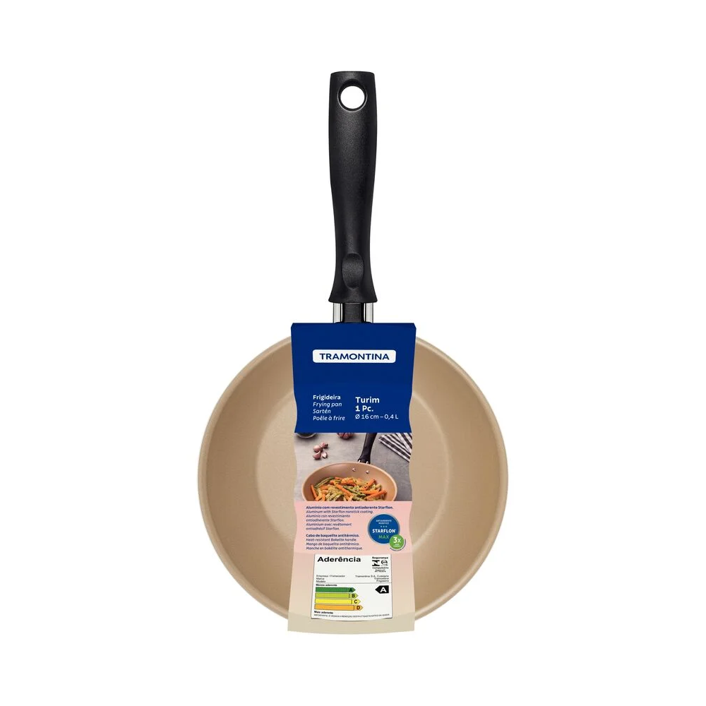 Qualidade Tramontina: A Tramontina é uma marca renomada e confiável, reconhecida pela qualidade e durabilidade de seus produtos. A Frigideira Turim não é exceção, sendo um investimento que vai te acompanhar por muito tempo.