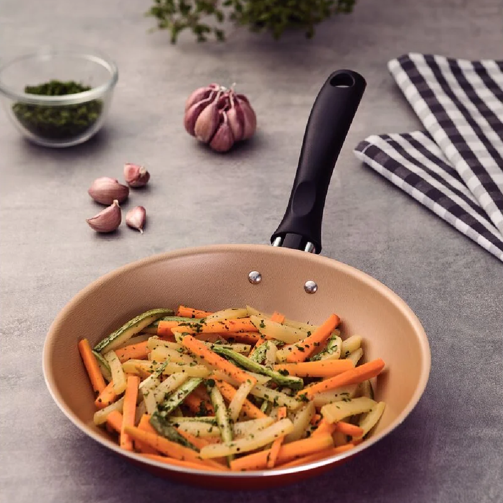 Feita de alumínio com revestimento antiaderente Starflon Max, a frigideira garante um cozimento uniforme e sem grudar, facilitando a limpeza e deixando você livre de preocupações.