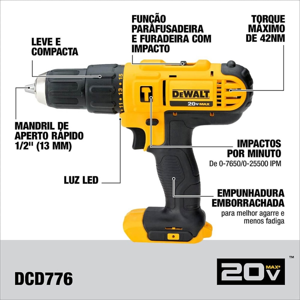 A Furadeira e parafusadeira com impacto à bateria bivolt, seu design é moderno e anatômico que facilita o manuseio. O motor proporciona excelente autonomia e desempenho. Possui velocidade variável e reversível.