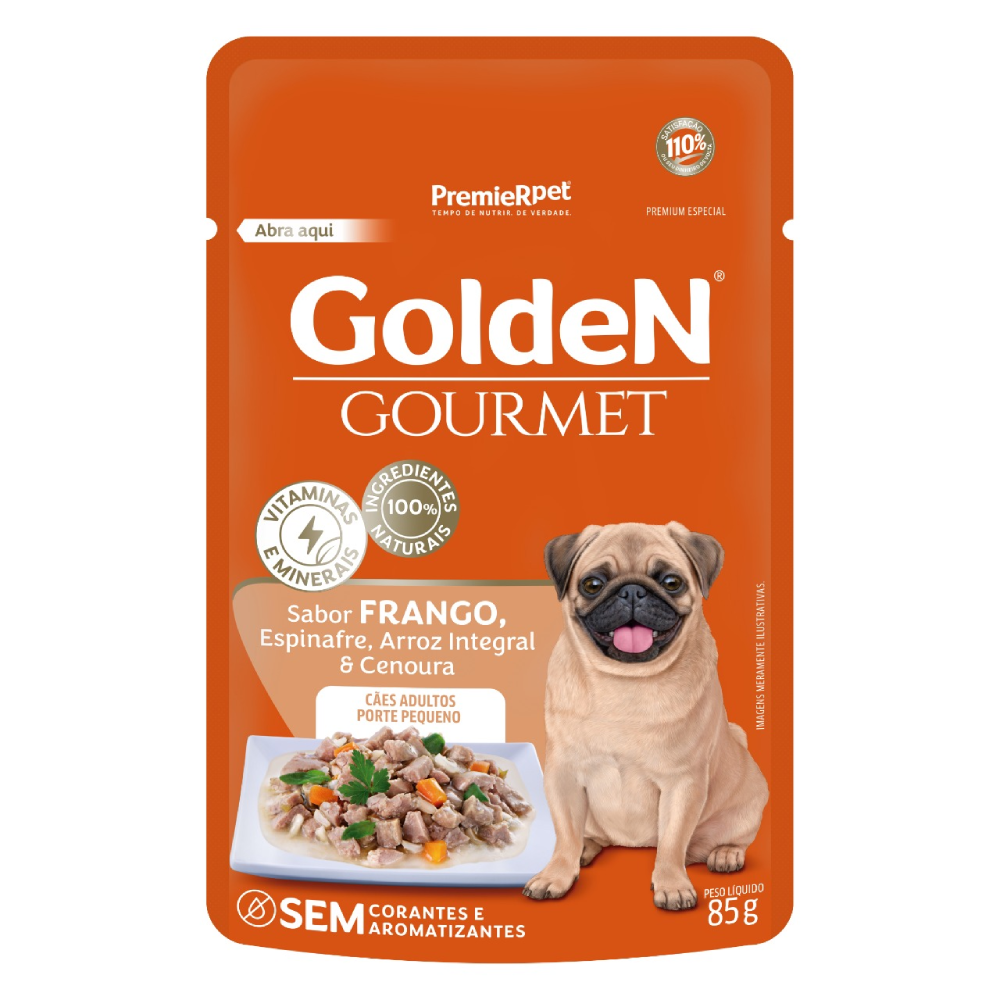 Água, carne de frango, carne mecanicamente separada de frango, pescoço de frango sem pele, plasma suíno em pó, farelo de arroz desengordurado, proteína isolada de soja, amido de milho, goma guar, arroz integral, espinafre, cenoura, cloreto de sódio (sal comum), cloreto de potássio, fosfato bicálcico, vitamina A, vitamina B12, vitamina C, vitamina D3, vitamina E, vitamina K3, ácido fólico, ácido pantotênico, biotina, cloreto de colina, niacina, piridoxina, riboflavina, tiamina, cobre aminoácido quelato, ferro aminoácido quelato, iodeto de potássio, manganês aminoácido quelato, selênio metionina, zinco aminoácido quelato.