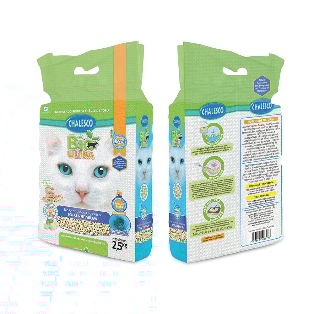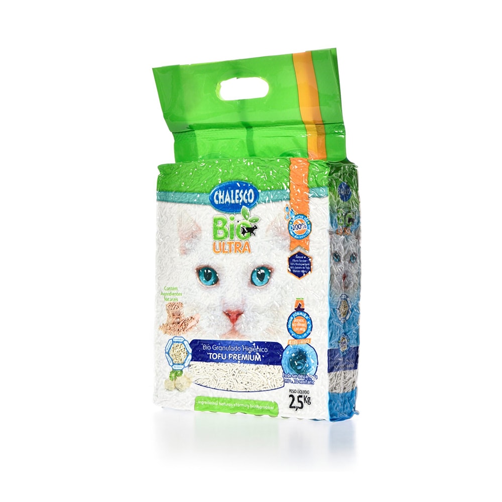 Detalhes do Produto Apresentamos o Granulado Higiênico para Gato Chalesco Bio Ultra Tofu Premium 2,5 kg, um produto inovador e 100% natural projetado especialmente para atender às necessidades higiênicas dos gatos de todas as idades e raças.
