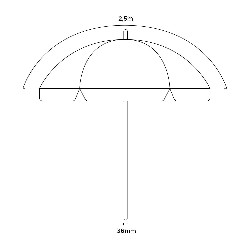 Diâmetro guarda-sol (envergadura): 2,5 m.