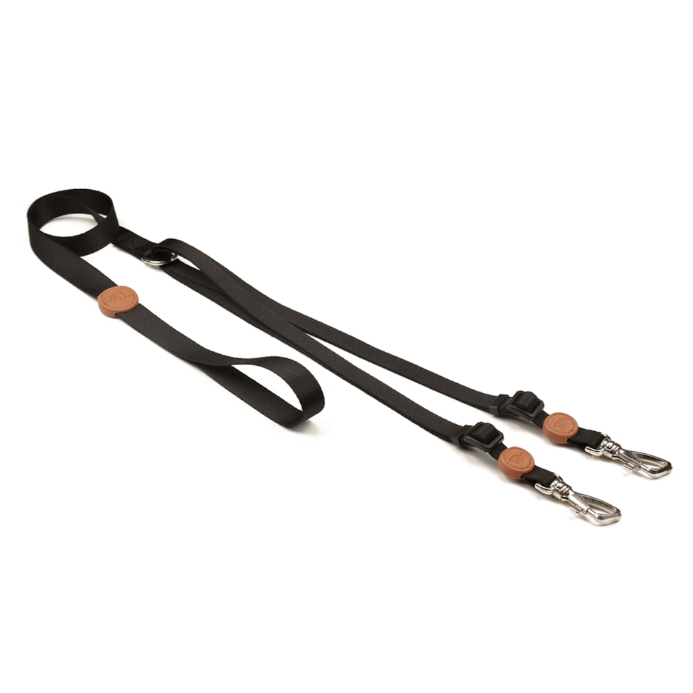 Fabricada com materiais de alta qualidade, a Guia Dupla oferece resistência, durabilidade e conforto para o tutor e para os cães. A fita de poliéster não puxa os pelos, o regulador em poliacetal garante um ajuste firme e estável, e os metais em zamac não enferrujam, mesmo com uso intenso.