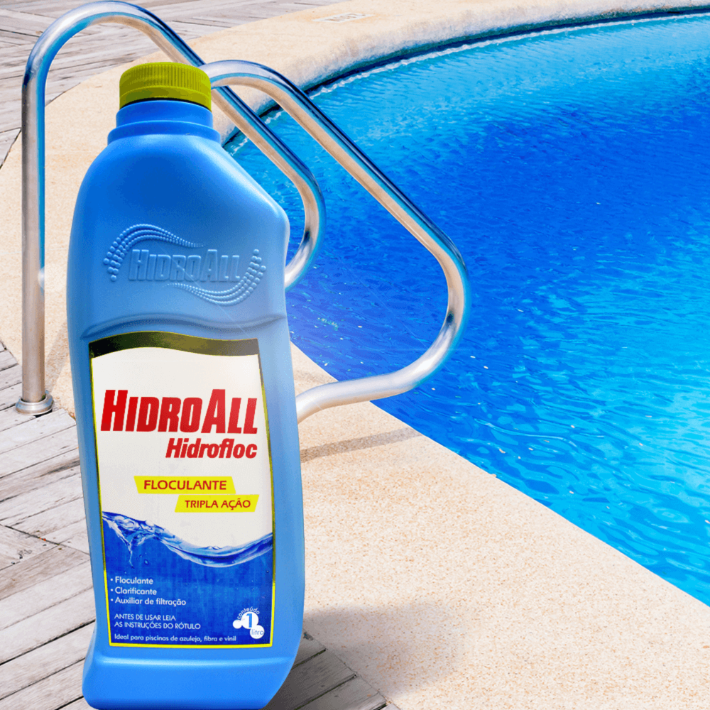 O Hidrofloc Tripla Ação aglutina as partículas microscópicas em suspensão na água, formando flóculos maiores e mais pesados, que passam a ser retidos pelo meio filtrante ou descem para o fundo da piscina tornando a água totalmente cristalina.