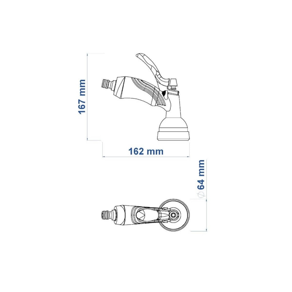 A hidropistola é conectada em mangueiras de 1/2", 5/8" e 3/4" através de sistema de engate rápido.