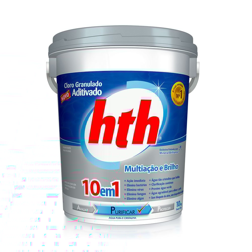 O HTH™ Cloro Granulado 10 em 1 é a solução completa para manter sua piscina cristalina, brilhante e segura, unindo eficácia, praticidade e tecnologia exclusiva para um cuidado superior da água.