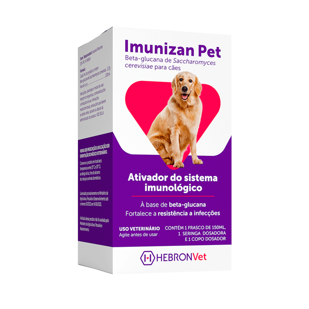 Imunizan Pet é um suplemento imunomodulador à base de beta-glucana de Saccharomyces cerevisiae, indicado para cães. Sua ação estimula o sistema imunológico, ativando macrófagos, promovendo a fagocitose de patógenos e induzindo a liberação de citocinas pró-inflamatórias.