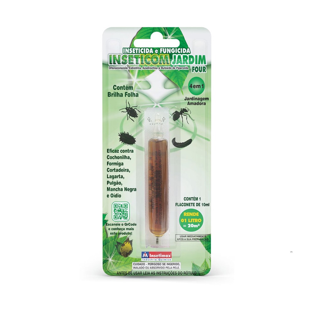 O Insetimax Inseticom Jardim Four Monodose 10ml é um produto prático e eficiente para o controle de pragas e doenças em plantas ornamentais, jardins e hortas domésticas. Sua fórmula combina ação inseticida e fungicida, auxiliando no combate a insetos e no controle de fungos que prejudicam o desenvolvimento saudável das plantas.