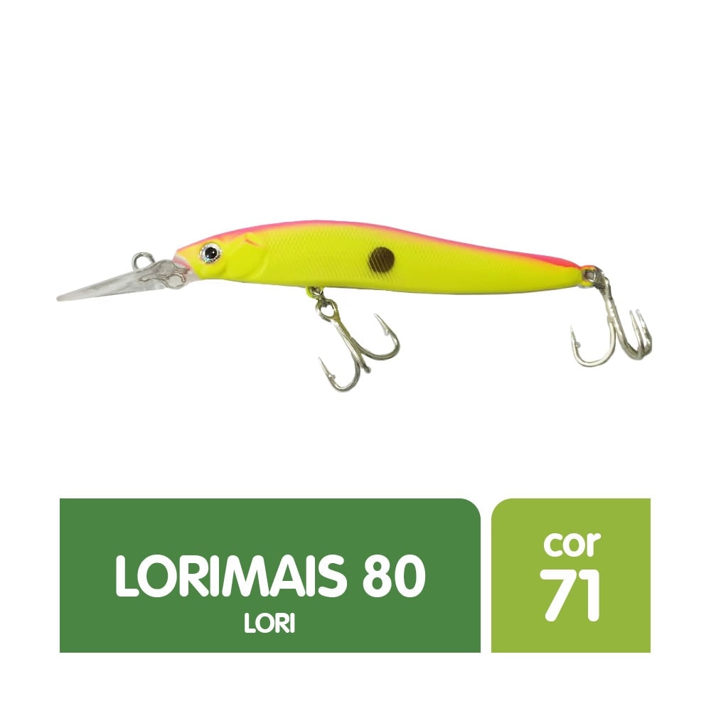 Detalhes do Produto A isca artificial Lori Mais 80 possui rattlin e sistema mecânico de transferência de peso, que proporciona arremessos longos e precisos. Sua longa barbela auxilia no trabalho em águas mais profundas. Possui pintura em tinta automotiva e é equipada com argolas e pitões em aço inox, 3 garatéias reforçadas 4x e olhos holográficos.