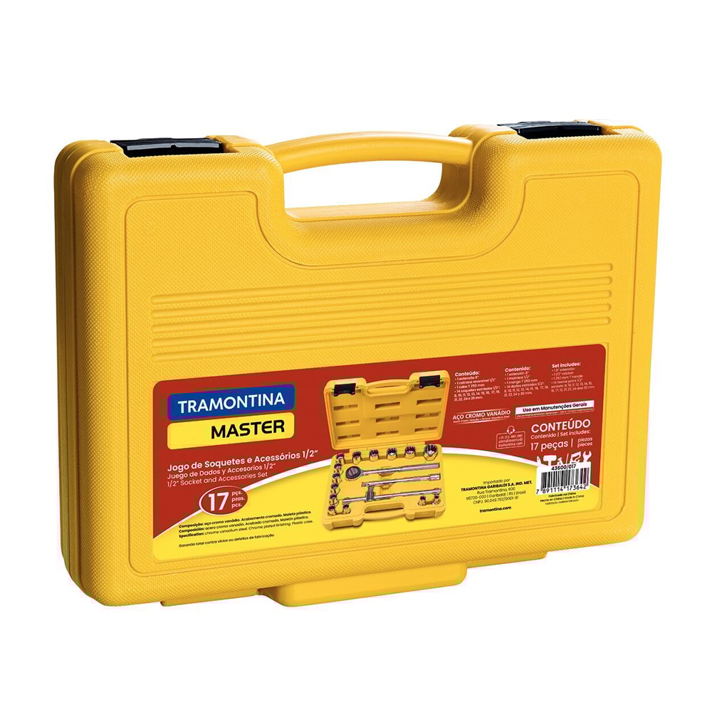 Detalhes do Produto O Jogo de Soquetes e Acessórios Tramontina 1/2 polegada com 17 Peças é um kit completo para você ter sempre à mão.