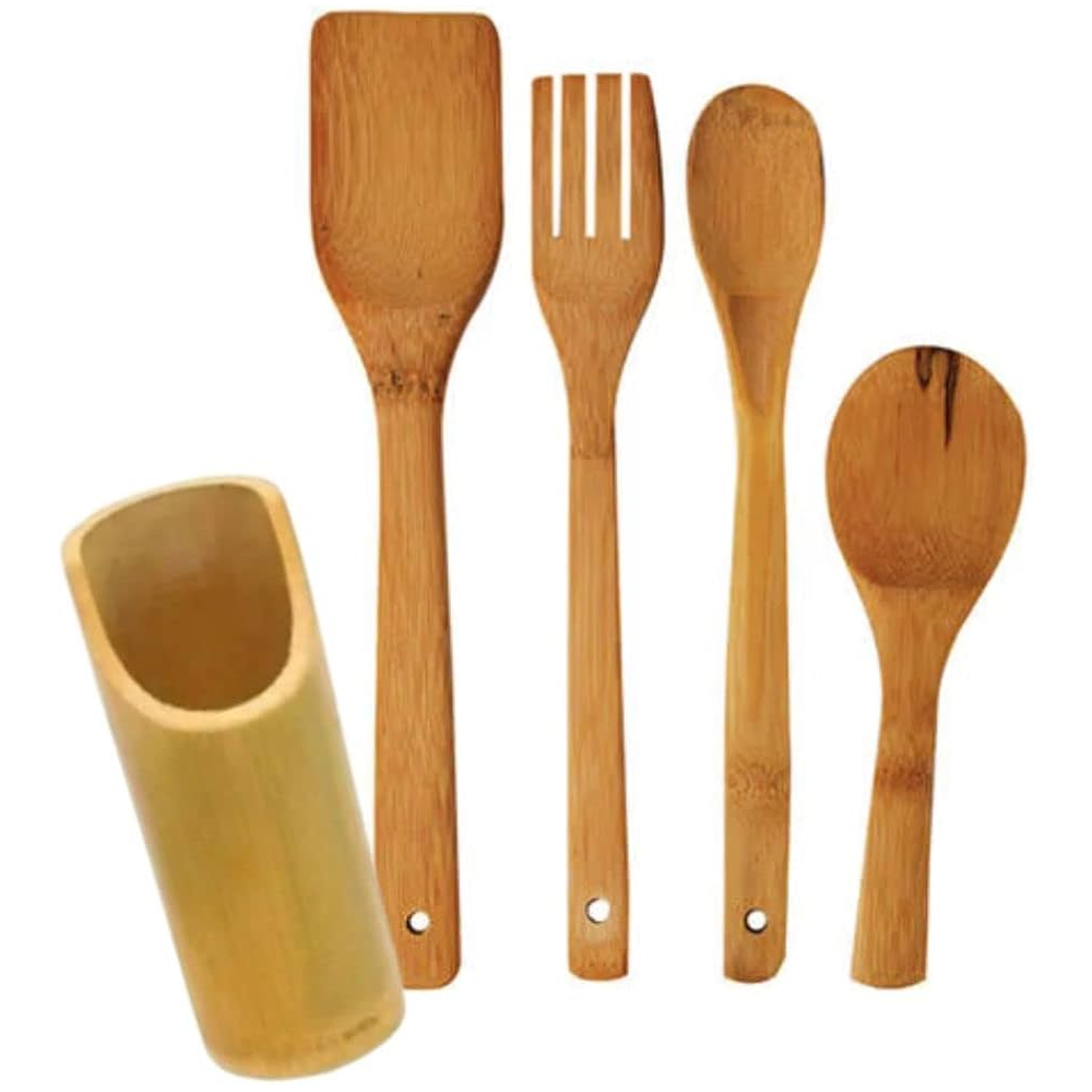 Garanta já o seu Jogo de Talheres em Bambu 5 Peças com Suporte JFZ e adicione um toque de beleza natural e praticidade à sua cozinha!