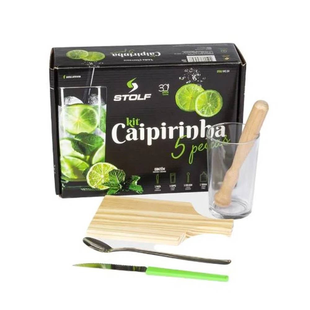 Kit caipirinha com 05 peças (01 tábua, 01 copo, 01 socador, 01 colher e 01 faca) Excelente qualidade, facilidade na hora de fazer sua caipirinha.