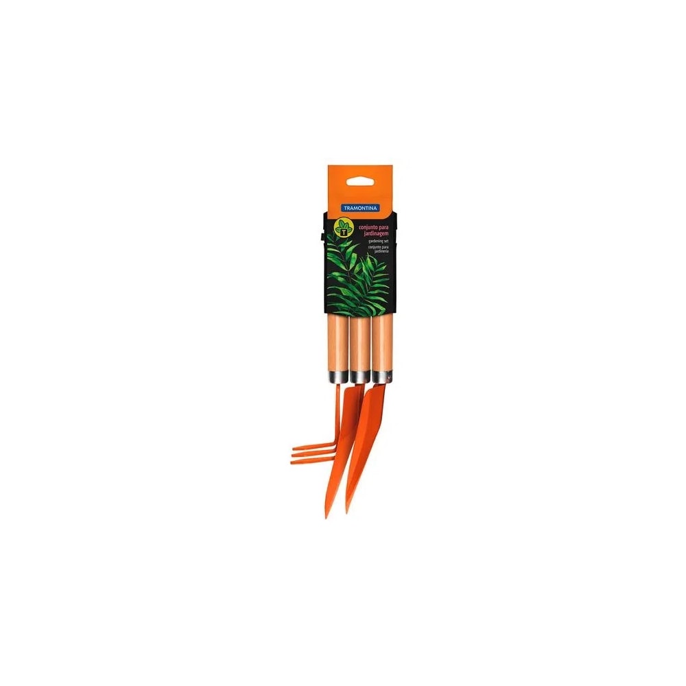 | Informações Gerais | As ferramentas são fabricadas em aço carbono especial de alta qualidade. Recebem pintura eletrostática a pó, que tem uma melhor apresentação visual e maior proteção contra oxidação. Os cabos destas ferramentas, além de possuírem ótima resistência, são produzidos com madeira de origem renovável. Cabos com acabamento envernizado, para um melhor acabamento e apresentação do produto. A camada protetora em verniz incolor realça sua tonalidade, concedendo brilho e um toque mais liso ao produto. Produtos leves, que geram menos esforço físico do usuário e tornam o trabalho mais prazeroso. Contém 3 peças: 1 pazinha larga, 1 pazinha estreita e 1 ancinho 3 dentes. A embalagem tem por finalidade facilitar a exposição do produto no ponto de venda. |