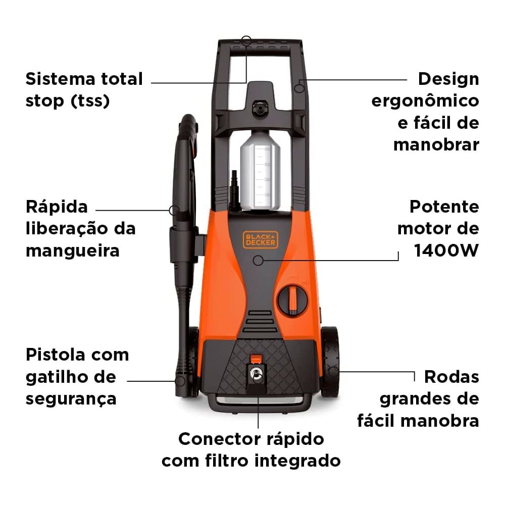 Lavadora de Alta Pressão Black+Decker 1.512 PSI, 1400W Com Alça e Rodas PW1450TDLBR
