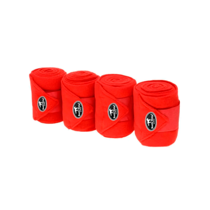O conjunto inclui 4 unidades, garantindo cobertura completa para todas as patas do animal. A cor vermelha vibrante adiciona um toque de elegância e destaque ao visual do seu cavalo.