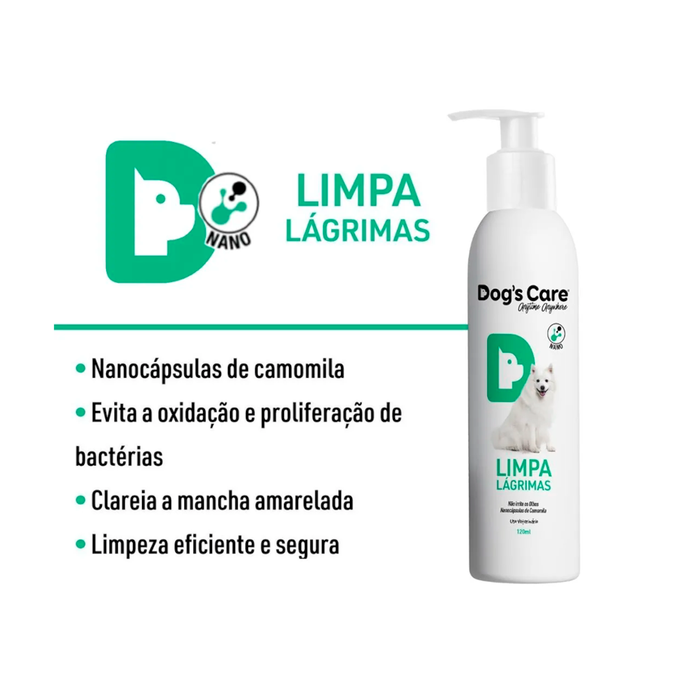 O Limpa Lágrimas para Cachorro com Nanocápsulas de Camomila Dog's Care 120ml possui óleo de camomila nanoencapsulado que promove a limpeza e clareamento dos pelos, clareamento das lágrimas ácidas, além da sensação refrescante na região dos olhos.