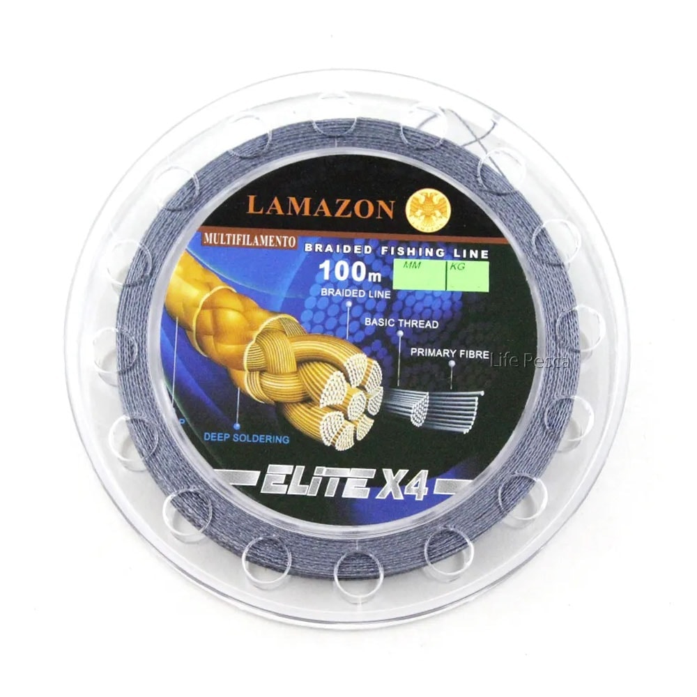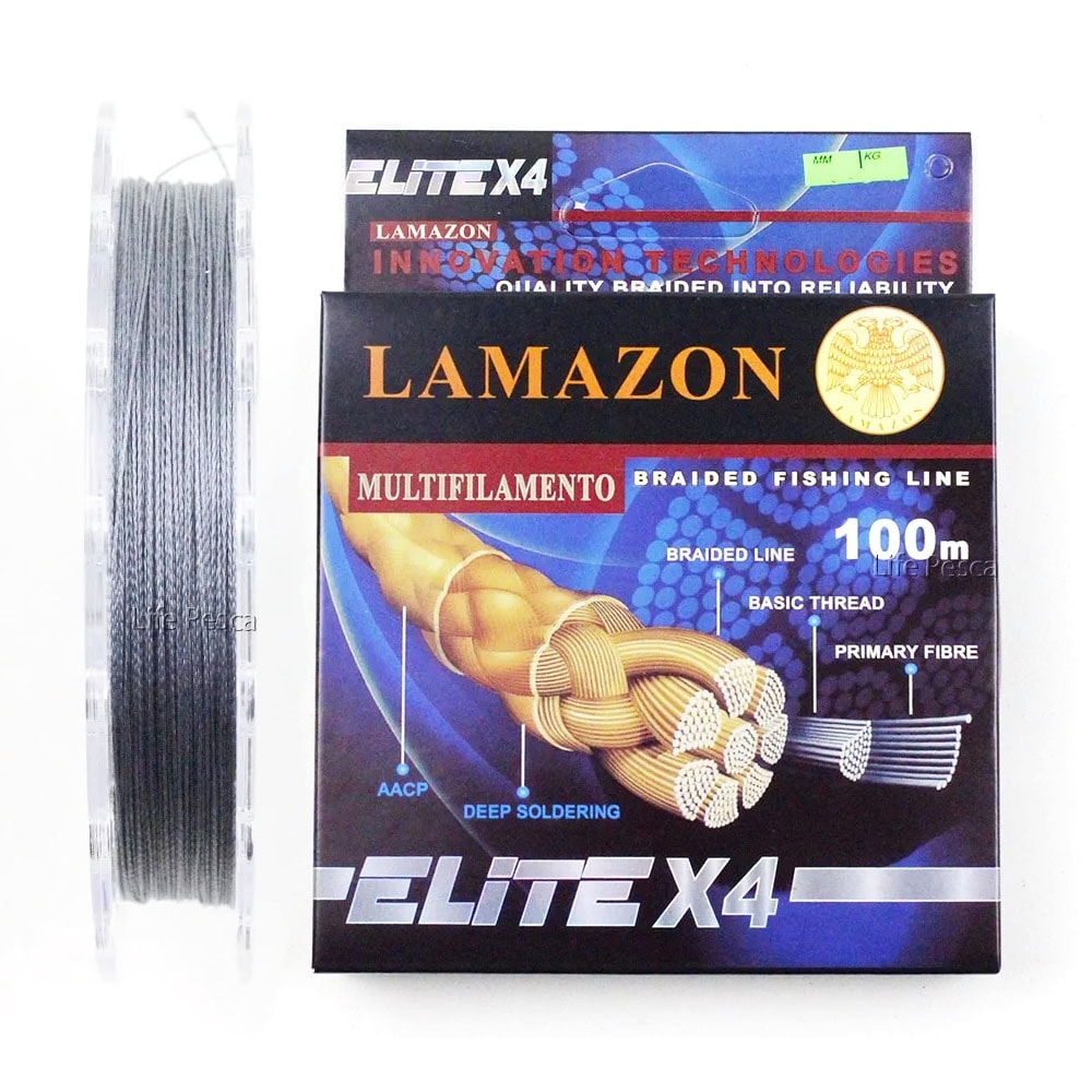 Detalhes do Produto A Linha Elite X4 da Lamazon é um multifilamento trançado e confeccionado em 100% PE com alta resistência e durabilidade, com trançado inovador de 4 fios sobre 1 fio central, deixando um acabamento mais arredondado. Impermeabilizada, desliza facilmente pelos passadores proporcionando arremessos mais longos e precisos. Possui tecnologia avançada de revestimento e é resistente à abrasão.