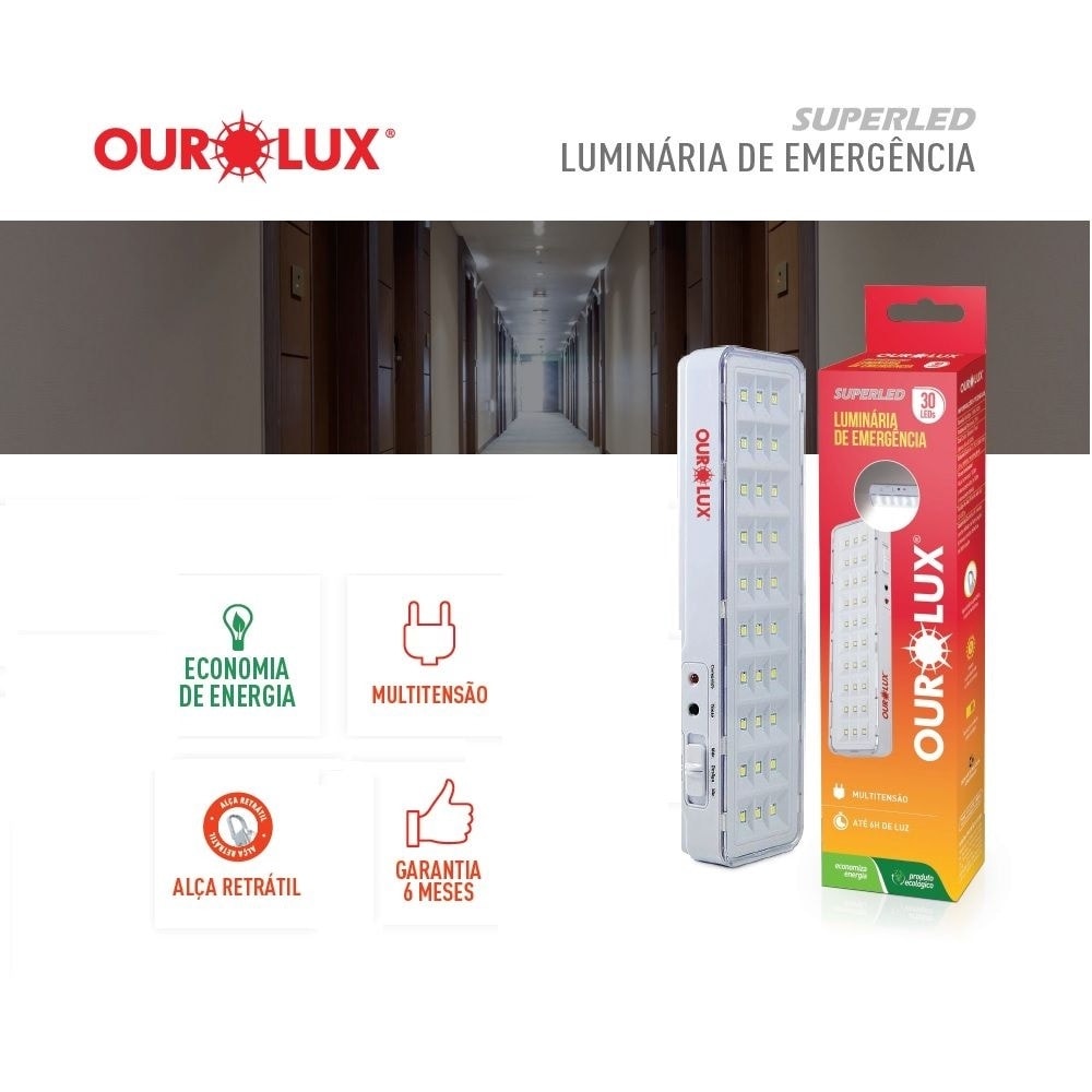 Luminária de Emergência Ourolux 30 LEDs Até 6h de Luz Bivolt