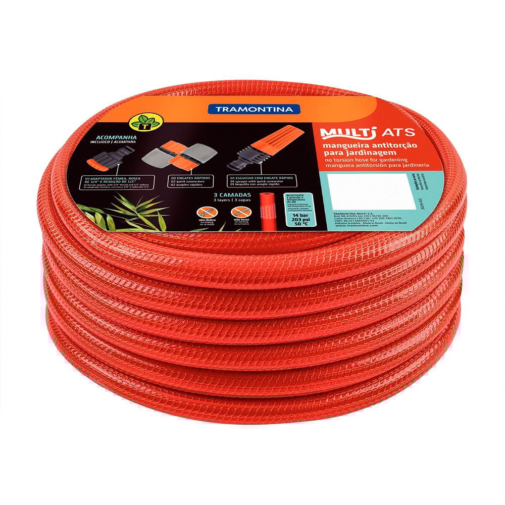 Mangueira Jardim Antitorção Multi ATS 1/2" Tramontina em PVC 3 Camadas com Engates Rápidos e Esguicho 79248/303